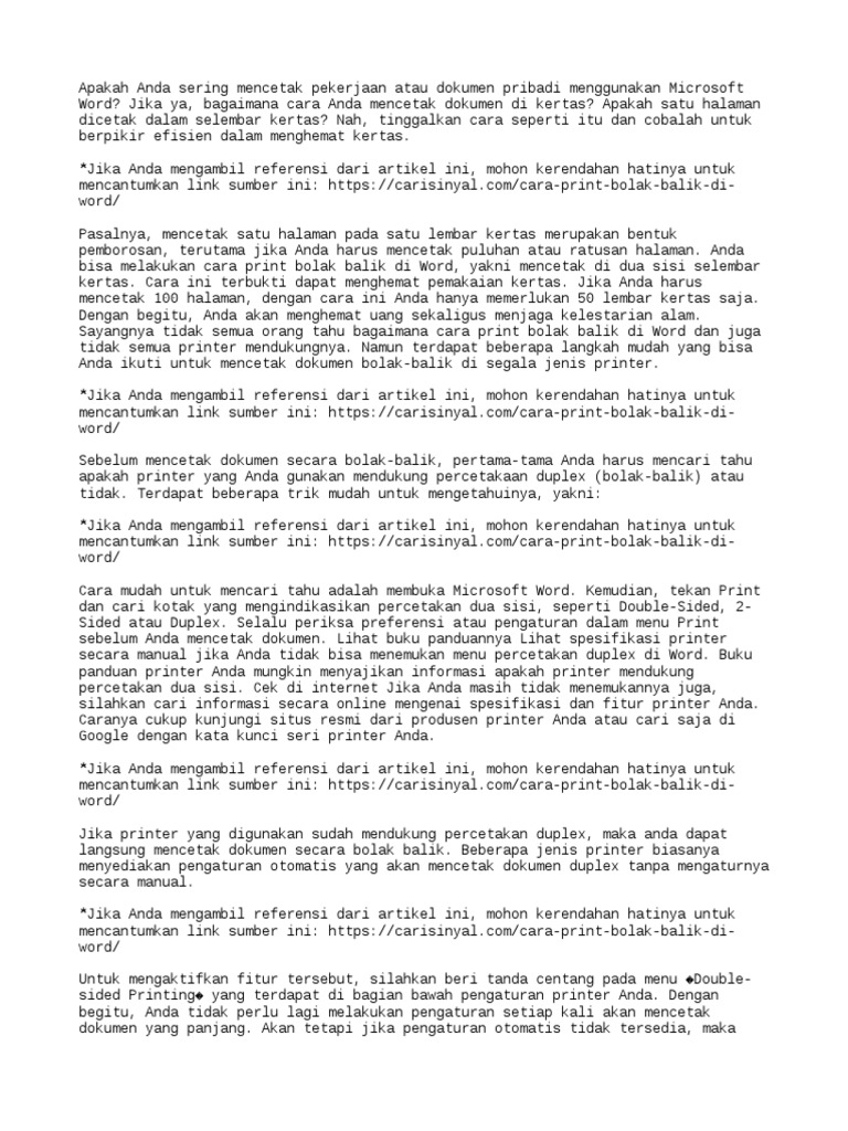 Dokumen akan secara otomatis dicetak secara bolak balik.